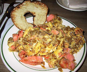 They have a nova scramble on the menu. Piping hot scrambled eggs come out of the kitchen with large chunks of nova lox scattered throughout. Delicately caramelized onions are the first thing that hits your nose when its placed in front of you. when you take a bite, you can still feel the texture of the onions even though it tastes like they have been sautéing for hours. The slightly cooked lox gives the salmon another dimension of texture that is new at first bite, then becomes a welcoming feel to the tongue. Salty, sweet, savory, and fluffy are words that come to mind when eating this. The toasted bagel that comes along side is the perfect utensil.